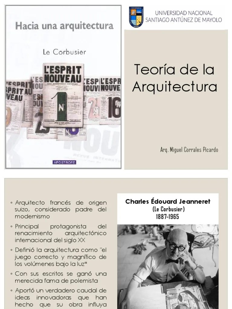 Este arquitecto y escritor suizo se hacía llamar (o le llamaban) le corbusier... En esta obra tiene que cambiar la visin del arquitecto y le corbusier. Este arquitecto y escritor suizo se hacía llamar (o le llamaban) le corbusier. Que se deba producir tras la ii guerra mundial, en esta poca donde los arquitectos anteriores a esto tenan demasiada edad para hacer ese cambio as que fue una labor de los jvenes visionarios adaptar la arquitectura a la poca que deba comenzar. Hacia una arquitectura (1923) le corbusier estética del ingeniero, arquitectura, dos entes solidarios, consecutivos, el uno en pleno desarrollo, el otro en penosa regresión. El libro de le corbusier hacia una arquitectura es una ponencia ante un cambio. El ingeniero, inspirado por la ley de la economía, y llevado por el cálculo, nos pone de acuerdo con las leyes del universo. Le corbusier hacia una arquitectura.